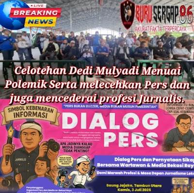 Spontan Kalimat dari Celotehan Dedi Mulyadi membuat Marah dan Geram Sejumlah Insan Pers termasuk kalimat Sorotan tajam Publik Hal ini langsung di Tanggapi oleh Ketua PWI Bekasi Raya,Ade Muksin,S.H.,Yang menegaskan bahwa pernyataan tersebut sangat disayangkan karena dapat menyesatkan persepsi publik dan melemahkan peran strategis media profesional dalam kehidupan berdemokrasi.